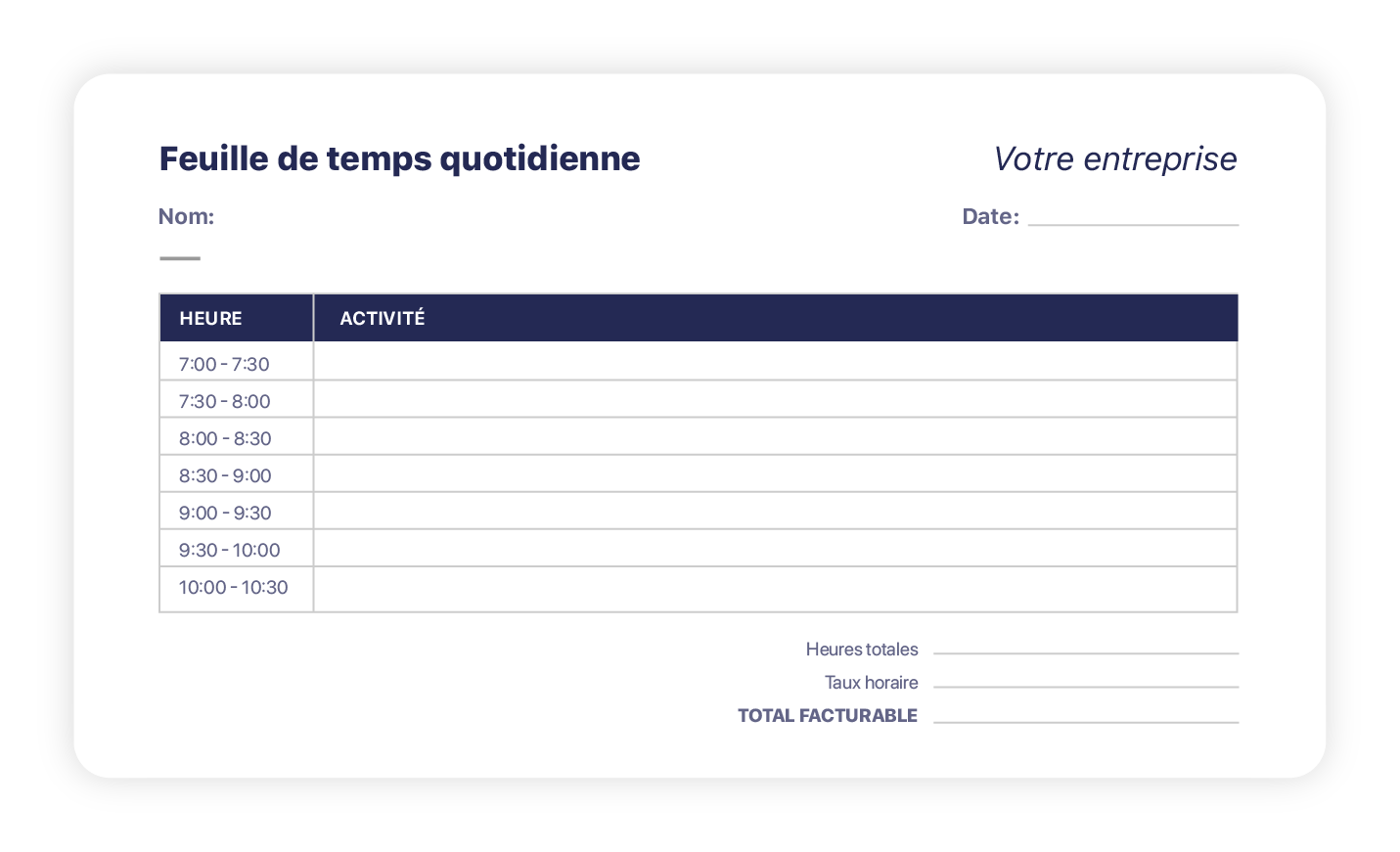 Modèle de feuille de temps quotidienne