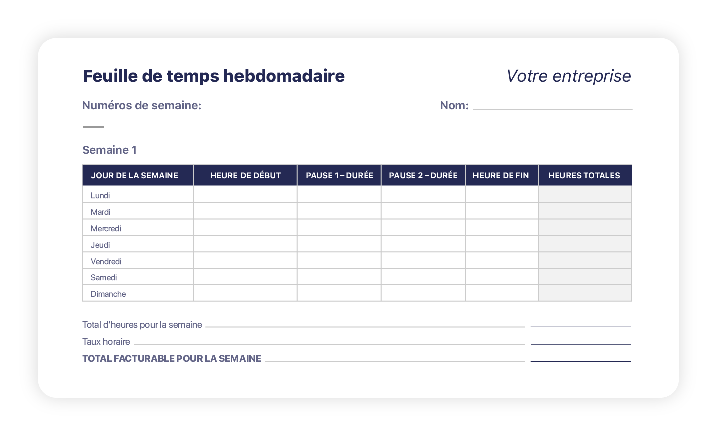 Modèle de feuille de temps hebdomadaire